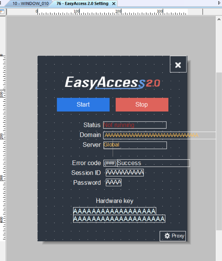 For HMIs requiring an activation card: The HMI can be activated by purchasing an activation card from Maple Systems. The activation code (from the activation card) and the hardware key are required to activate EasyAccess 2.0 in these units. The HMI’s hardware key is located in the HMI’s system settings window. Select the EasyAccess 2.0 tab and locate the 30 digit hardware key. You may also find it on Window 76 – EasyAccess 2.0 Setting. Select “Add HMI” in the domain and enter the hardware key and activation code. When an HMI is activated by an activation code, it is automatically added to the domain under which it was activated. Open window 76 – “EasyAccess 2.0 Setting” on the HMI. With the HMI connected to the Internet, push the Start button to initiate the connection to the EasyAccess 2.0 server. For HMIs with EasyAccess 2.0 pre-installed: The HMI can be activated by obtaining a Session ID and Password from the domain. Open window 76 – “EasyAccess 2.0 Setting.” With the HMI connected to the Internet, push the Start button to initiate the connection to the EasyAccess 2.0 server. If the HMI has not been assigned to a domain yet, a Session ID and Password will be assigned to the HMI and appear on window 76. Select “Add HMI” in the domain and enter the Session ID and Password. It should now be added to the domain. Step 4: Download and Launch EasyAccess 2.0:Download the EasyAccess 2.0 app on your PC/ iPad/ iPhone/ Android Tablet, Launch EasyAccess 2.0, enter the User ID and password. Once logged in, the program will list all HMIs assigned to this ID including all HMIs under an HMI group. Select an HMI and establish a remote connection. You can now monitor any HMI in your HMI list.